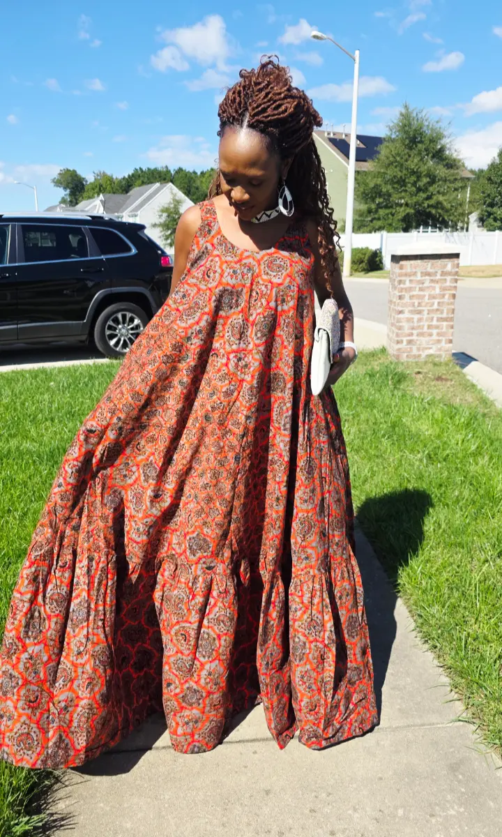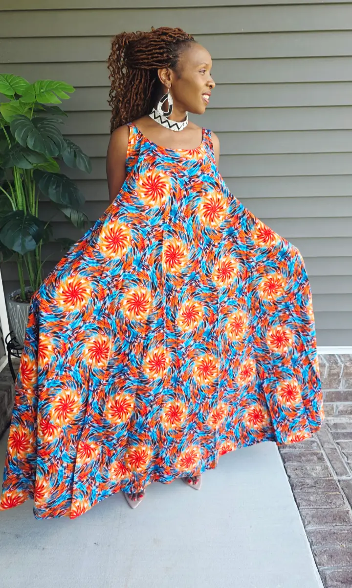 | Maxi Summer Dress Color | Fiery Coral, Muted Coral, Sky Blue, Vivid Red-Orange |
